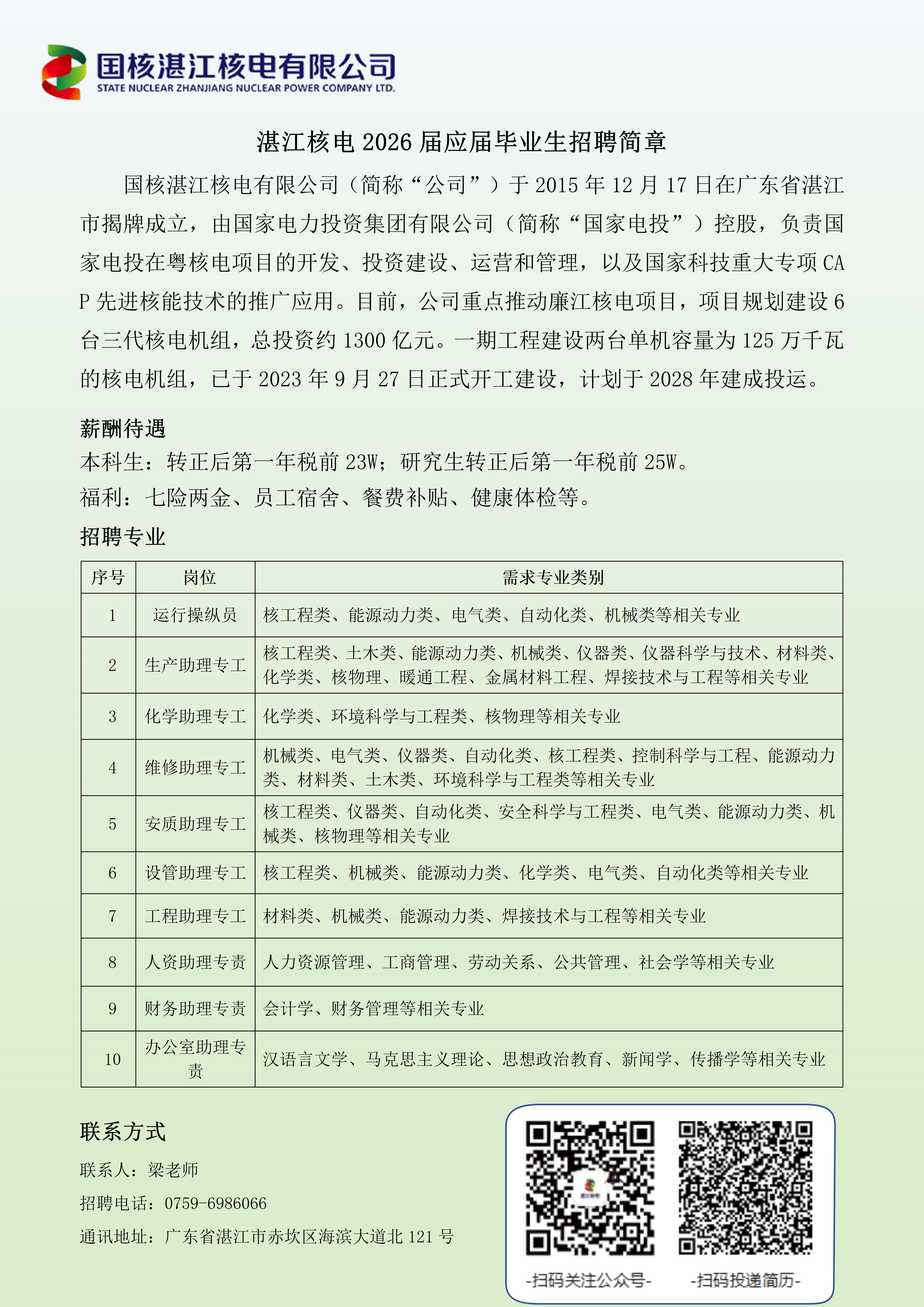 ? ? 湛江核电项目作为安全、高效、低碳的清洁能源项目,是湛江市能源产业发展的重点支撑项目,对构建粤港澳大湾区优质能源供给体系,推动湛江社会经济蓬勃发展具有重要的战略意义。