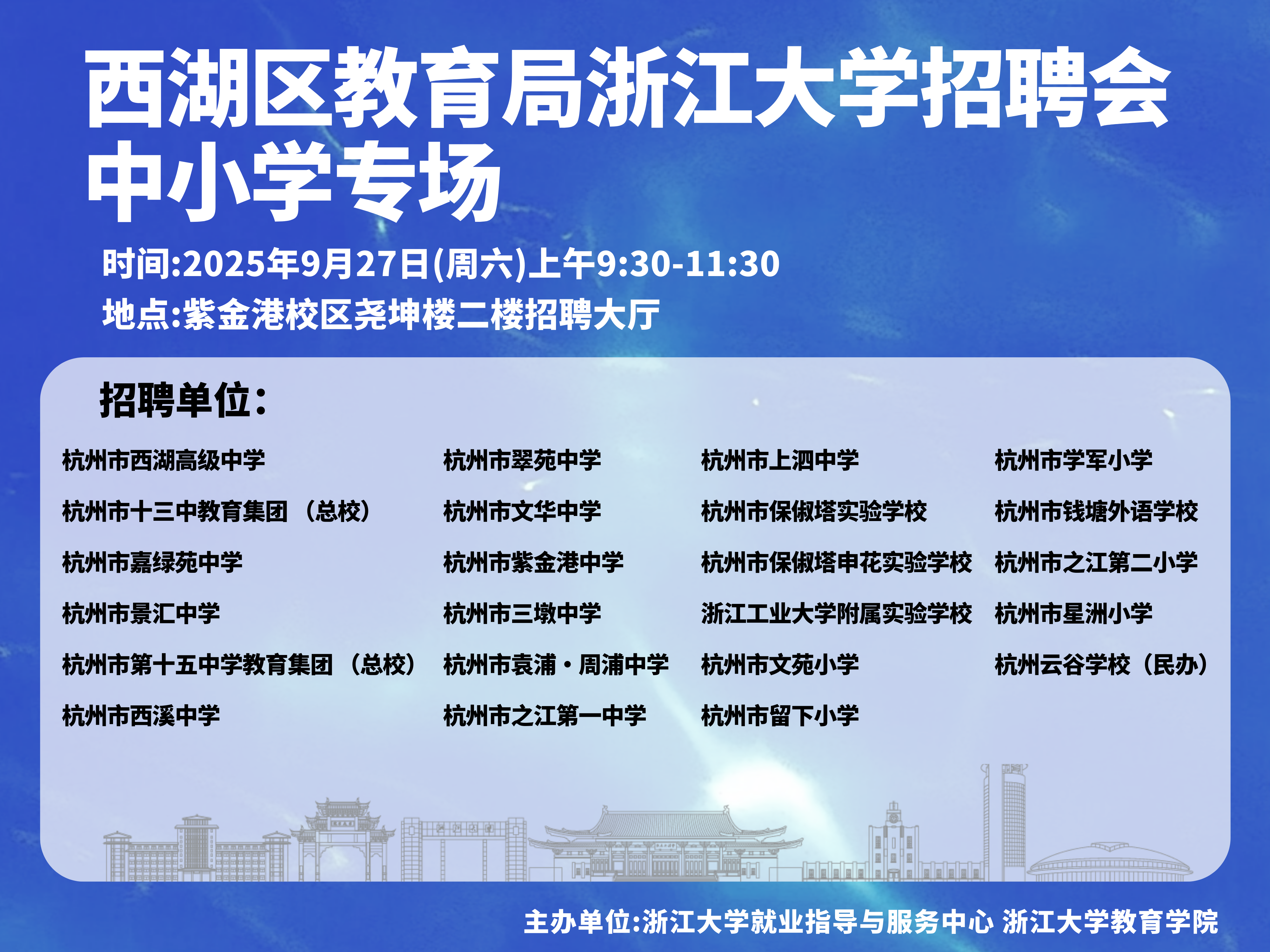 本次招聘会为中小学专场,面向浙江大学全校开放。